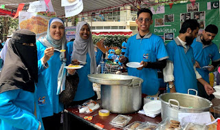 Para mahasiswa luar negeri yang kuliah di UMS mengenalkan makanan Pakistan di Stand Bazah.